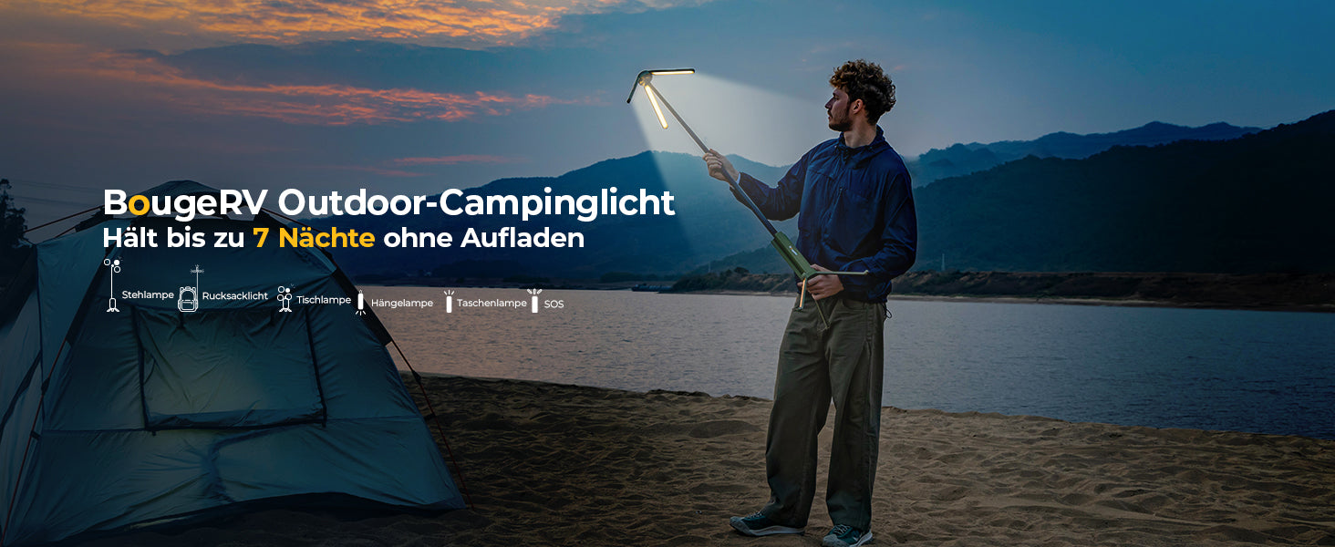 Ja, die wiederaufladbaren BougeRV-Campinglampen sind nach IP54 wasserdicht und somit für den Außeneinsatz geeignet.