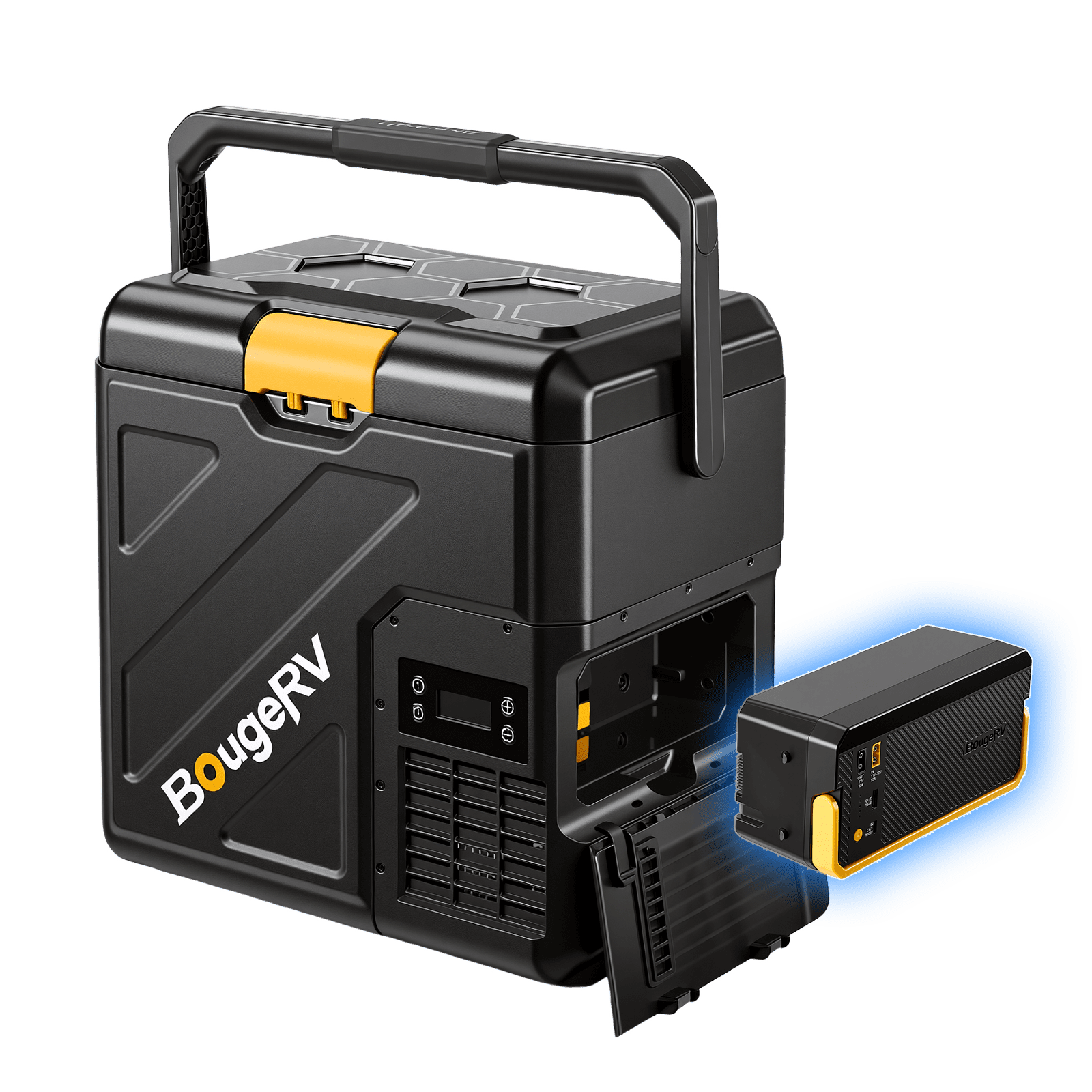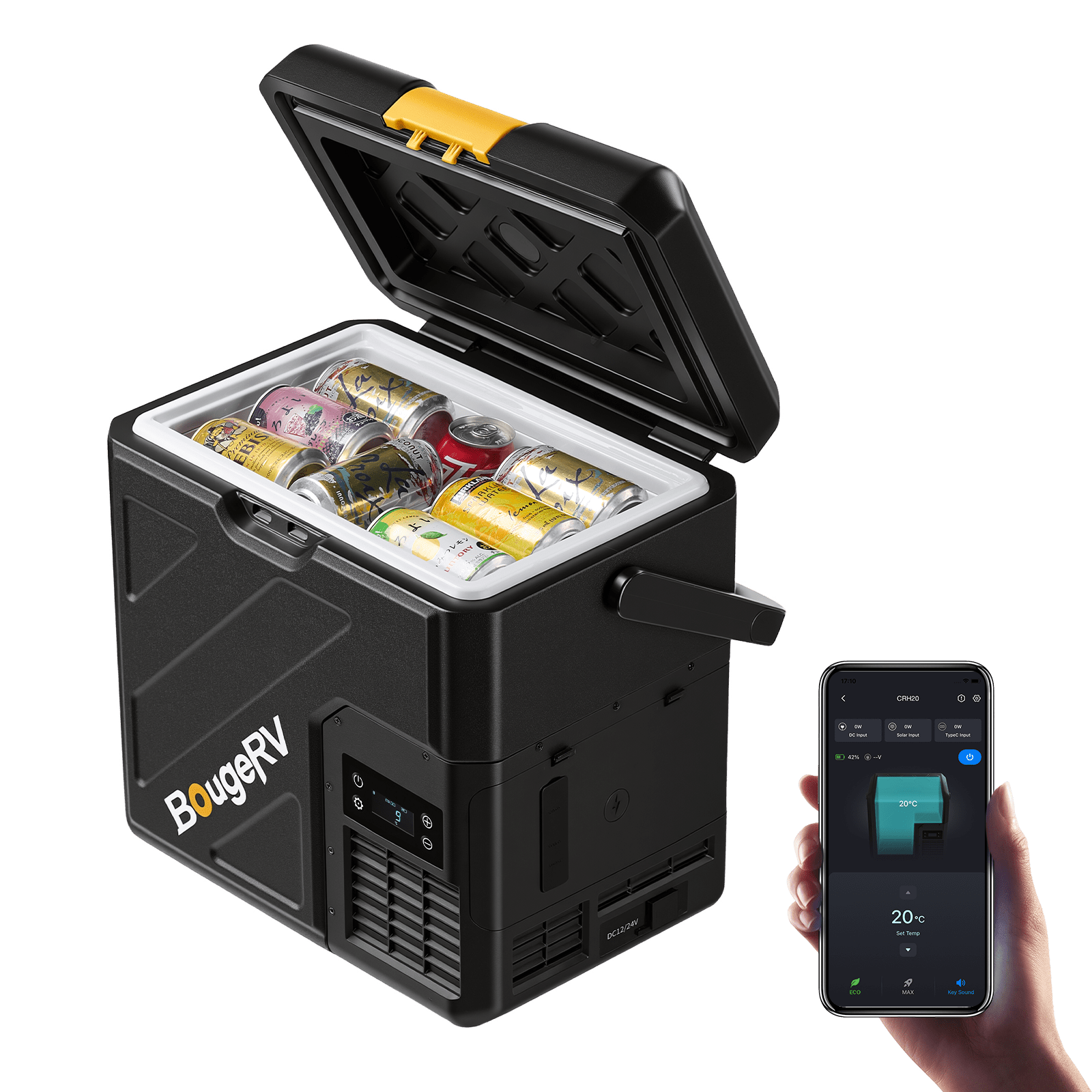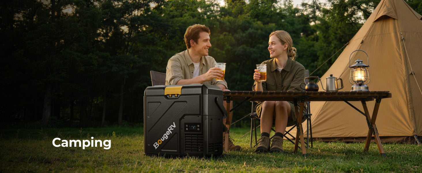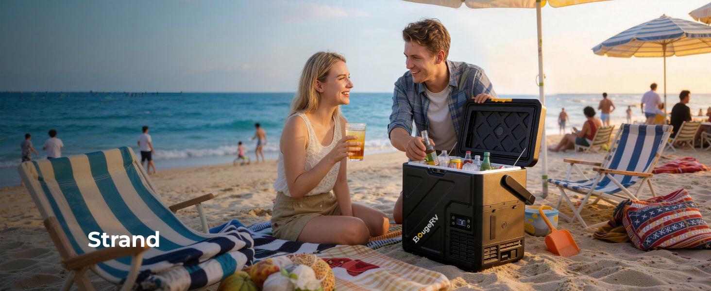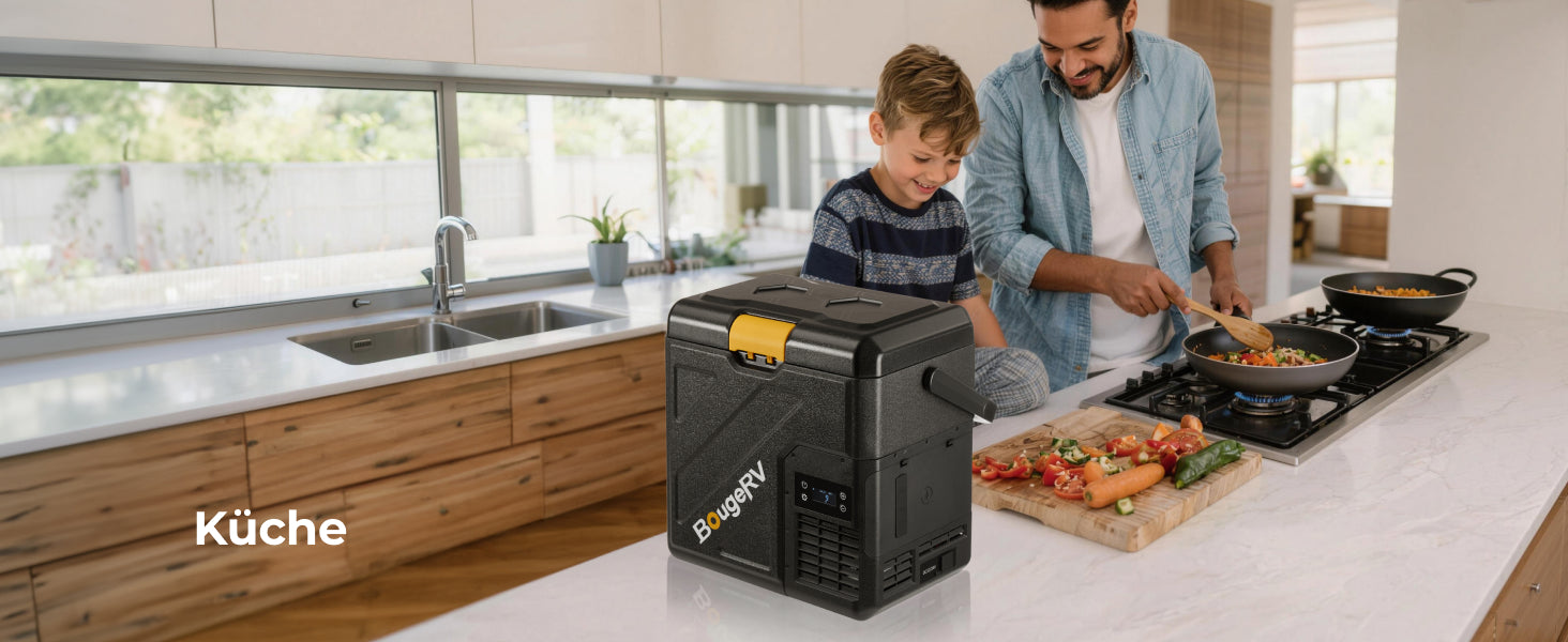 Versorgen Sie sich auf jeder Reise mit dem batteriebetriebenen Minikühlschrank von BougeRV, der für echte Unabhängigkeit vom Stromnetz entwickelt wurde. Mit einer Kühlleistung von bis zu -20 °C hält er Ihre Lebensmittel frisch und Ihre Getränke eiskalt, wohin auch immer die Reise Sie führt. Der herausnehmbare Akku mit hoher Kapazität bietet eine Laufzeit von bis zu 8,5 Tagen, sodass Sie nicht ständig an eine Steckdose angeschlossen sein müssen. Dieser robuste, tragbare und für Auto, Camping, Outdoor-Reisen und Abenteuer im Freien konzipierte batteriebetriebene Minikühlschrank verwandelt jede Reise in eine voll ausgestattete mobile Küche.
