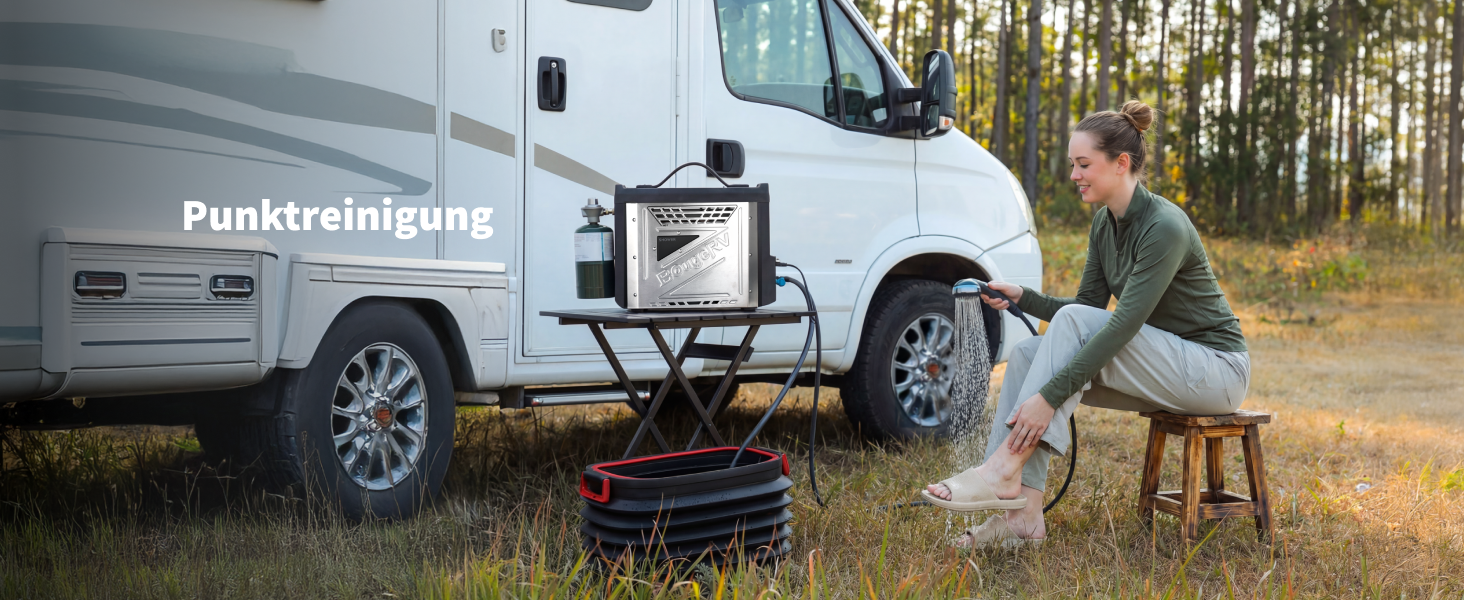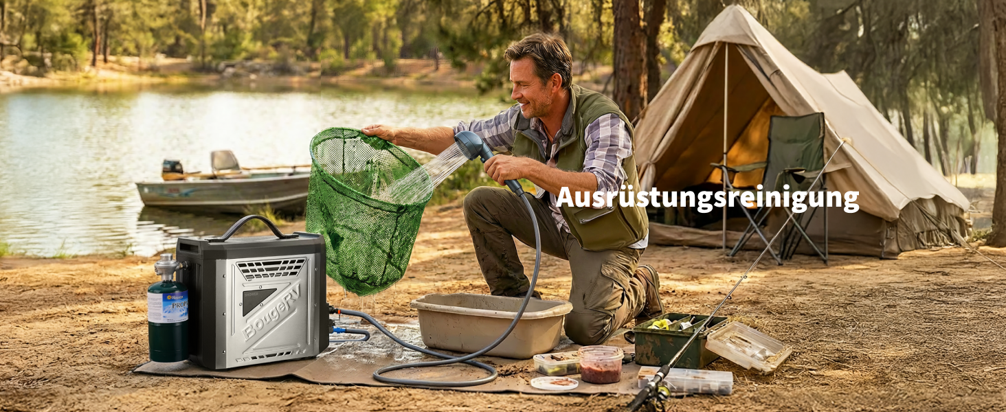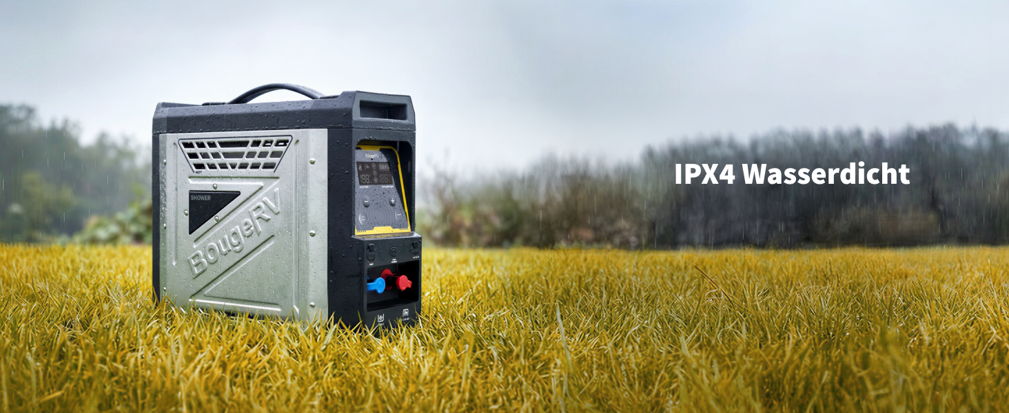 Der tragbare Propangas-Wassererhitzer BougeRV sorgt mit seiner integrierten Temperaturregelung, die für eine konstante und angenehme Wassertemperatur sorgt – ohne plötzliche Schwankungen zwischen heiß und kalt –, für echten Komfort im Freien. Er ist robust gebaut, für raue Umgebungen geeignet und leicht zu transportieren und eignet sich perfekt für schnelle Duschen, Geschirrspülen und Reinigungsarbeiten auf dem Campingplatz oder unterwegs.
