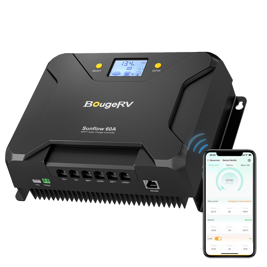 Wenn Sie die Lebensdauer Ihrer Solarmodule und der angeschlossenen Batterie sichern wollen, ist die Installation eines Solarladereglers unerlässlich. Die Wahl eines hochwertigen Solarladereglers von BougeRV ist eine kluge Entscheidung. Sie können sich für den MPPT-Solarladeregler oder den PWM-Solarladeregler entscheiden. Kaufen Sie noch heute aus unserer Auswahl an Solarladeregler.