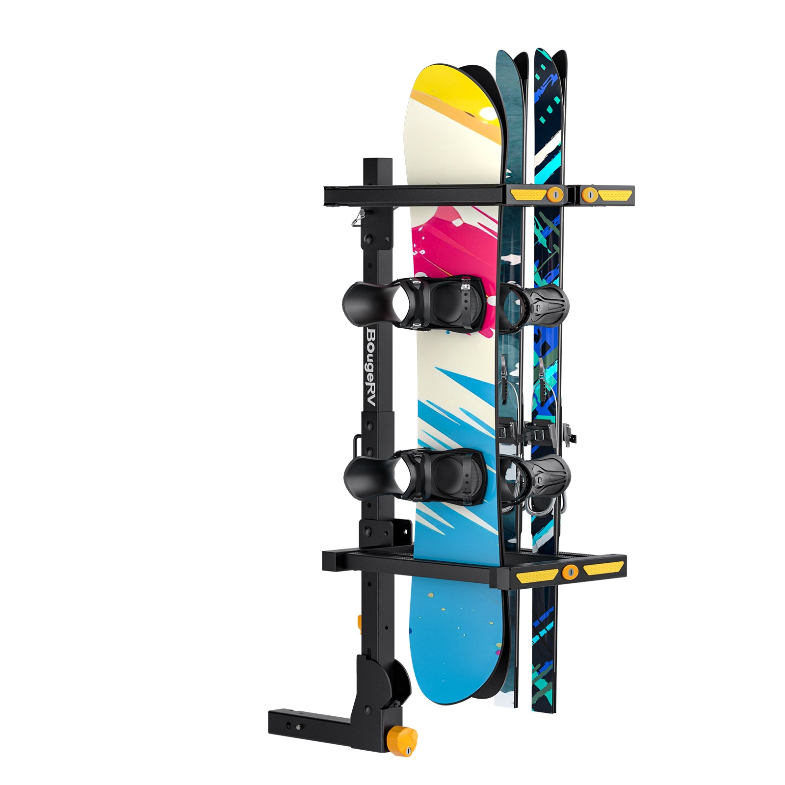 Entscheiden Sie sich für Ski-Gepäckträger mit integrierten Verriegelungssystemen und schließen Sie stets sowohl den Träger als auch Ihre Ski oder Snowboards ab. Die hitch montierten Ski-Gepäckträger von BougeRV für Autos sind ideal für Ihre Anforderungen.