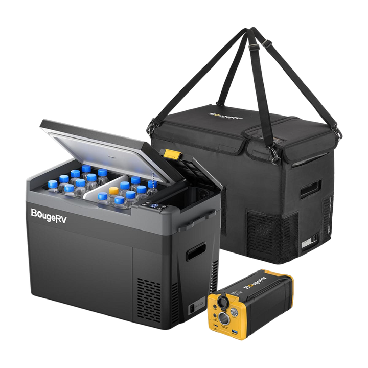 Die meisten tragbaren Kühlboxen werden an die 12V-Gleichstromsteckdose (DC) Ihres Autos angeschlossen. Die 12V Kühlschränke von BougeRV unterstützen auch 110V Wechselstrom (AC) für den Gebrauch zu Hause oder in Innenräumen.