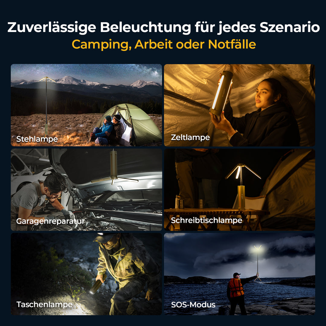 Ja, zu den gängigen Typen gehören Laternen, Scheinwerfer und taschenlampenähnliche Campingleuchten, die jeweils unterschiedlichen Zwecken und Vorlieben dienen. Die tragbare Campinglampe von BougeRV kann als Campinglaterne, Zeltlampe, Taschenlampe, Tischlampe oder Rucksacklampe verwendet werden.