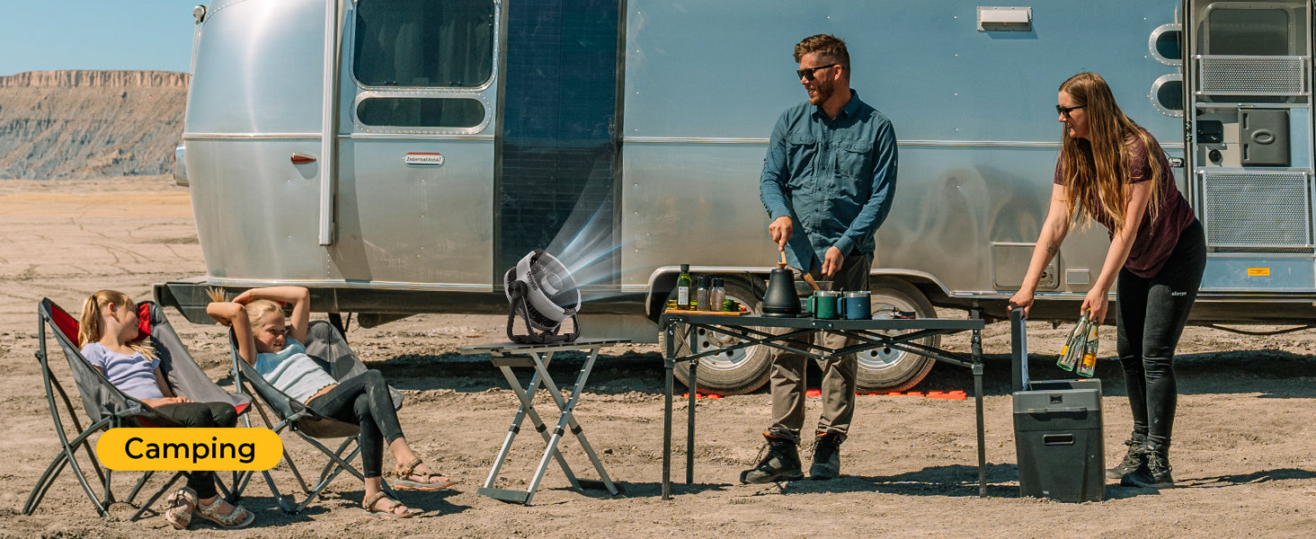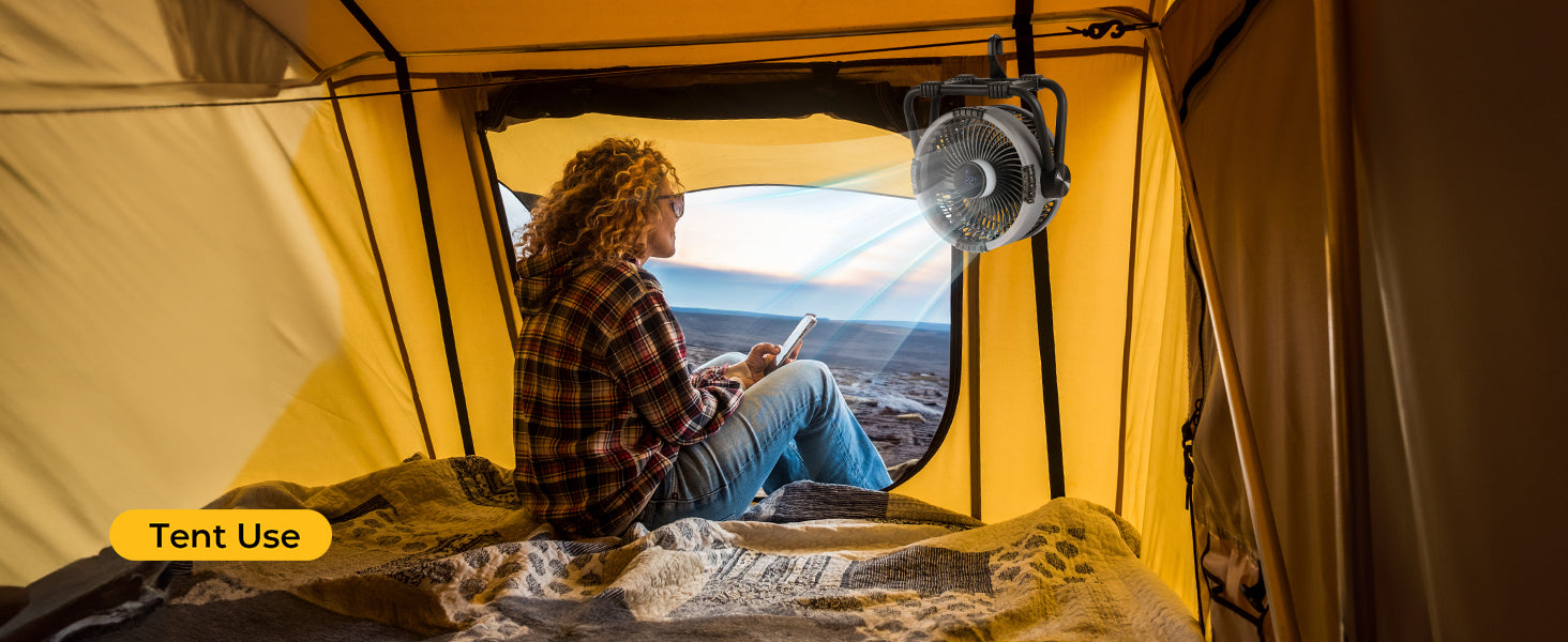 Bleib unterwegs angenehm kühl mit dem tragbaren Ventilator von BougeRV. Entwickelt für Outdoor-Abenteuer, liefert er eine starke Luftzirkulation von bis zu 5,4 m/s (17,7 ft/s) und läuft bis zu vier Nächte mit nur einer Akkuladung. Ideal für Camping, Wandern oder entspannte Tage am Strand – dein perfekter Begleiter für frische Luft im Freien.