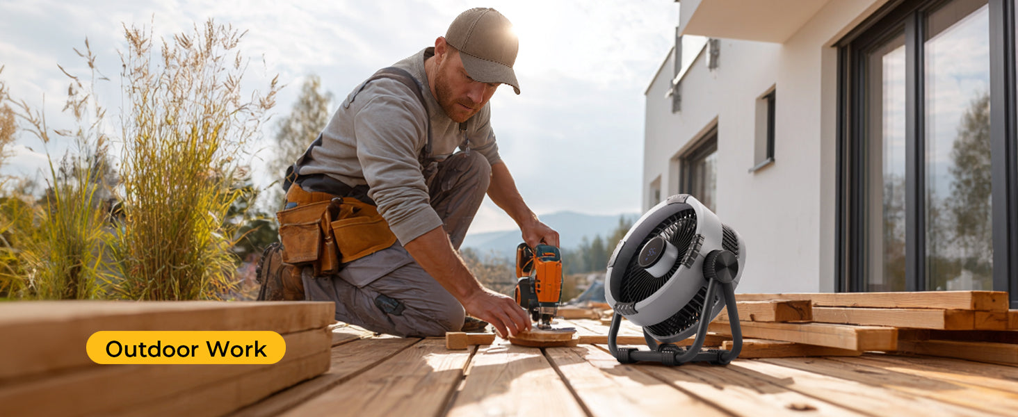 Leicht und tragbar: Dieser Outdoor-Lüfter verfügt über einen integrierten Griff für einfaches Tragen mit einer Hand. Perfekt für schnelle Ausflüge, Camping oder Reisen – einfach greifen und los!